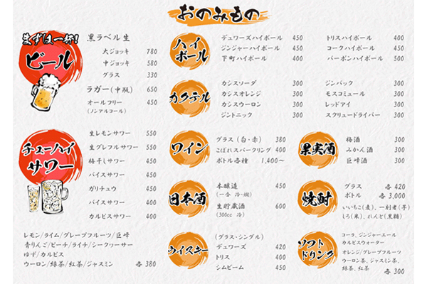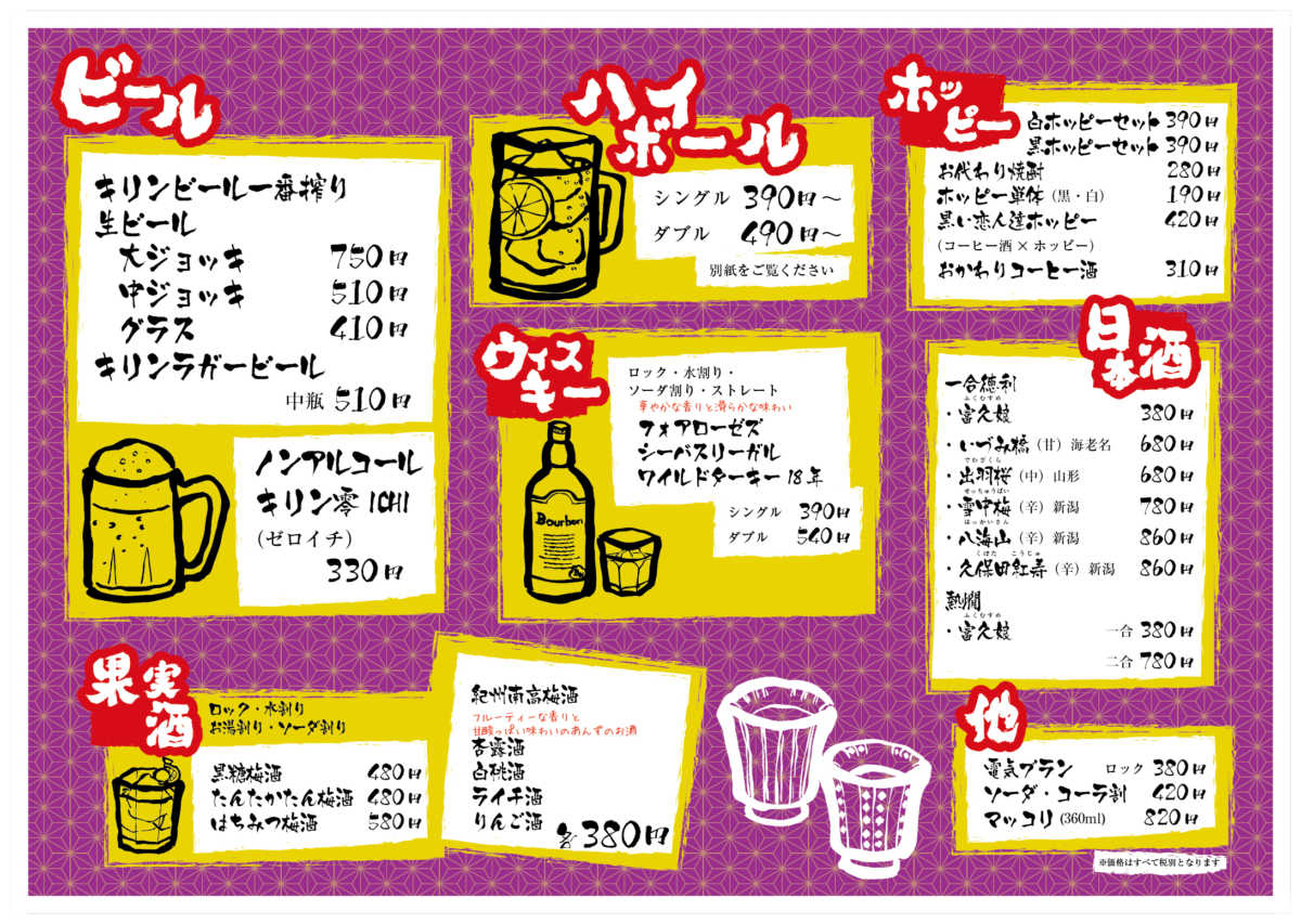 居酒屋ドリンクメニュー表政策・印刷 神奈川県のデザイン制作・印刷会社 厚木市・海老名市・座間市・綾瀬市・大和市。