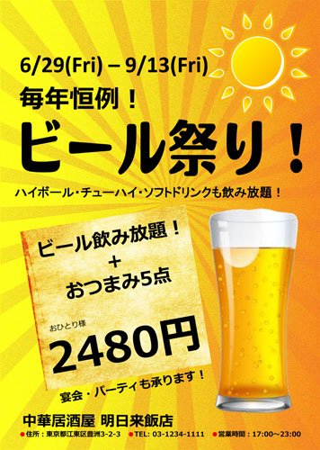 ビール飲み放題の無料チラシテンプレート-パワポンbyアスクル。