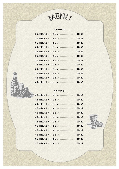 メニュー表作成の無料テンプレート・デザインサンプル - ネット印刷グラフィック。