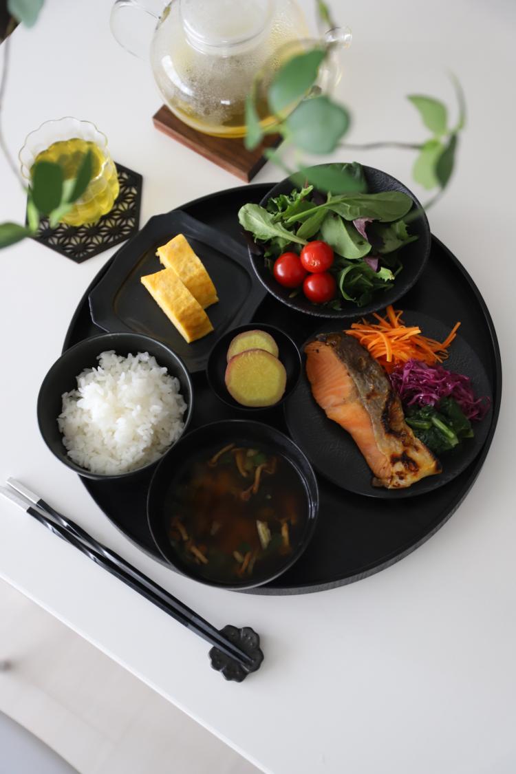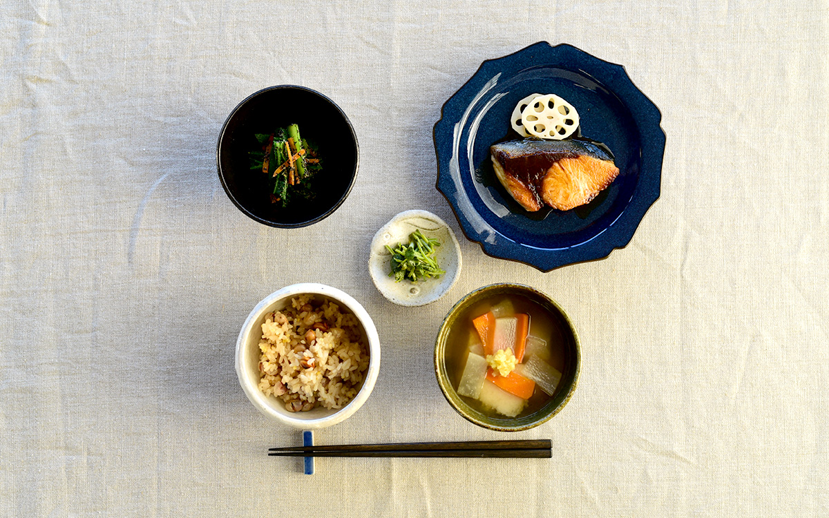 深い色合いの器でいただく日本の朝ごはんMONDAY MORNING一週間の始まりはちゃんと食べるマルミツウェブストア -marumitsu webstore。