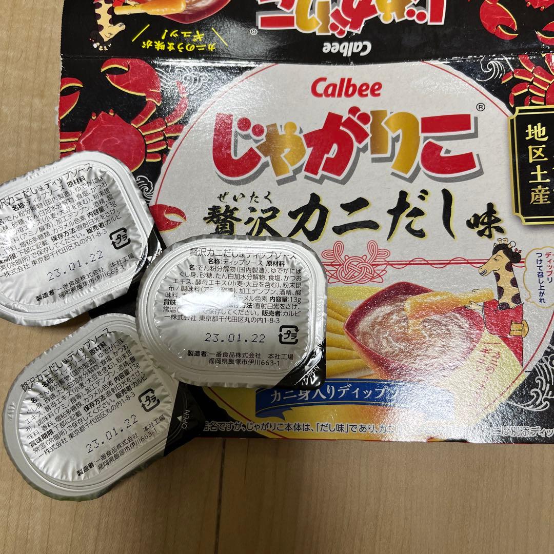 日本海地区限定販売だと! 「じゃがりこ贅沢カニだし味」ディップソース付き!今村だけがよくわかるブログ。