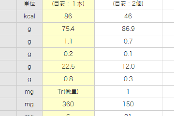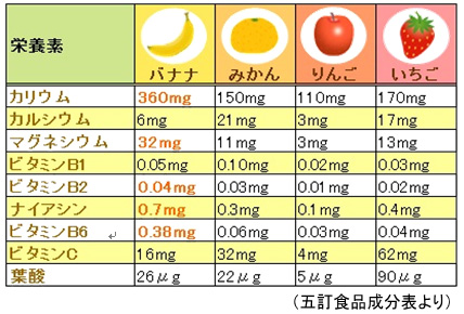 栄養成分比較表 バナナ大学 - バナナの情報総合サイト。