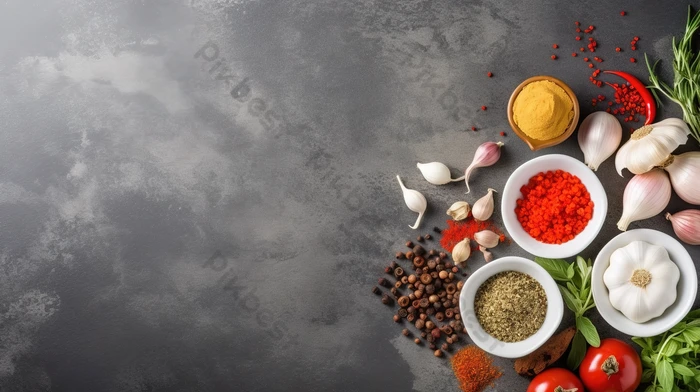 織り目加工の灰色の背景に料理の楽しみのためのさまざまな食材を喜ばせる 背景JPG 無料ダウンロード - Pikbest。