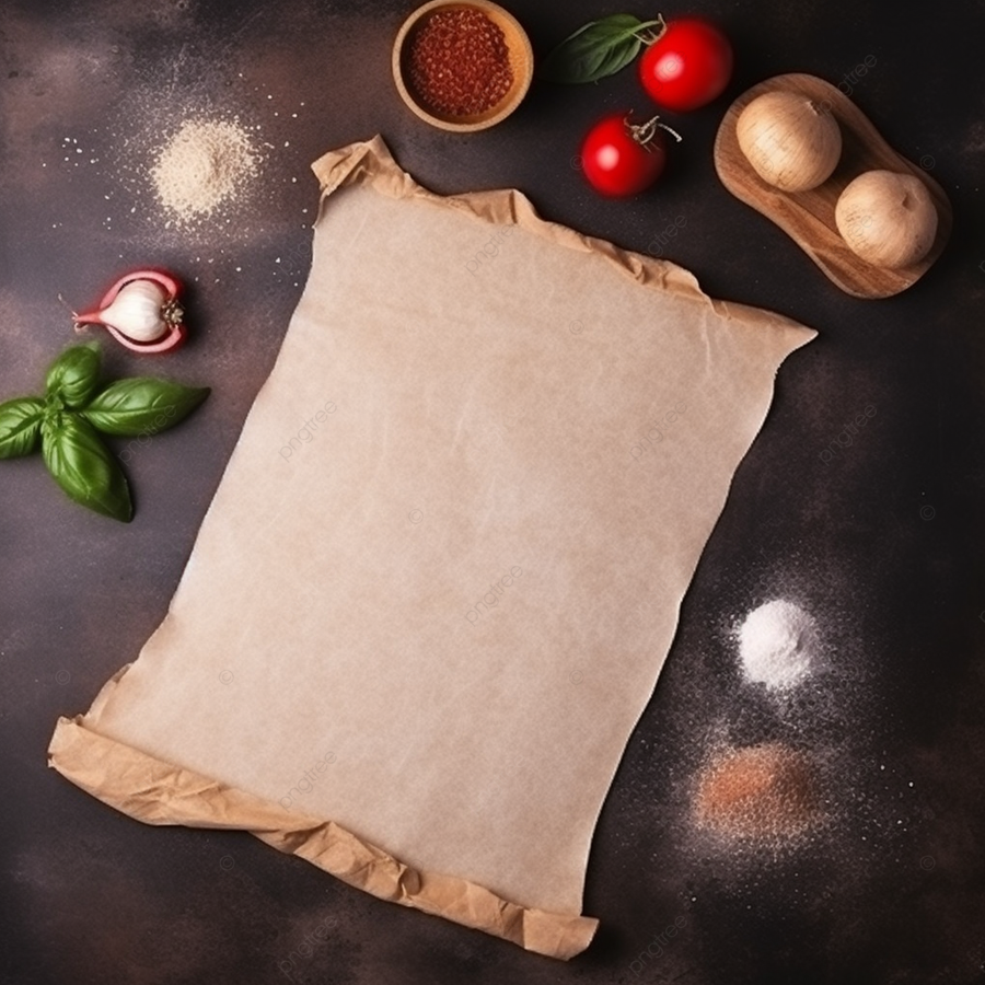 黒の背景に材料と料理用紙が付いた紙, バナー, メニュー, テキストのレシピ場所イラスト画像、PNGフリー 素材の、ロイヤリティフリ。