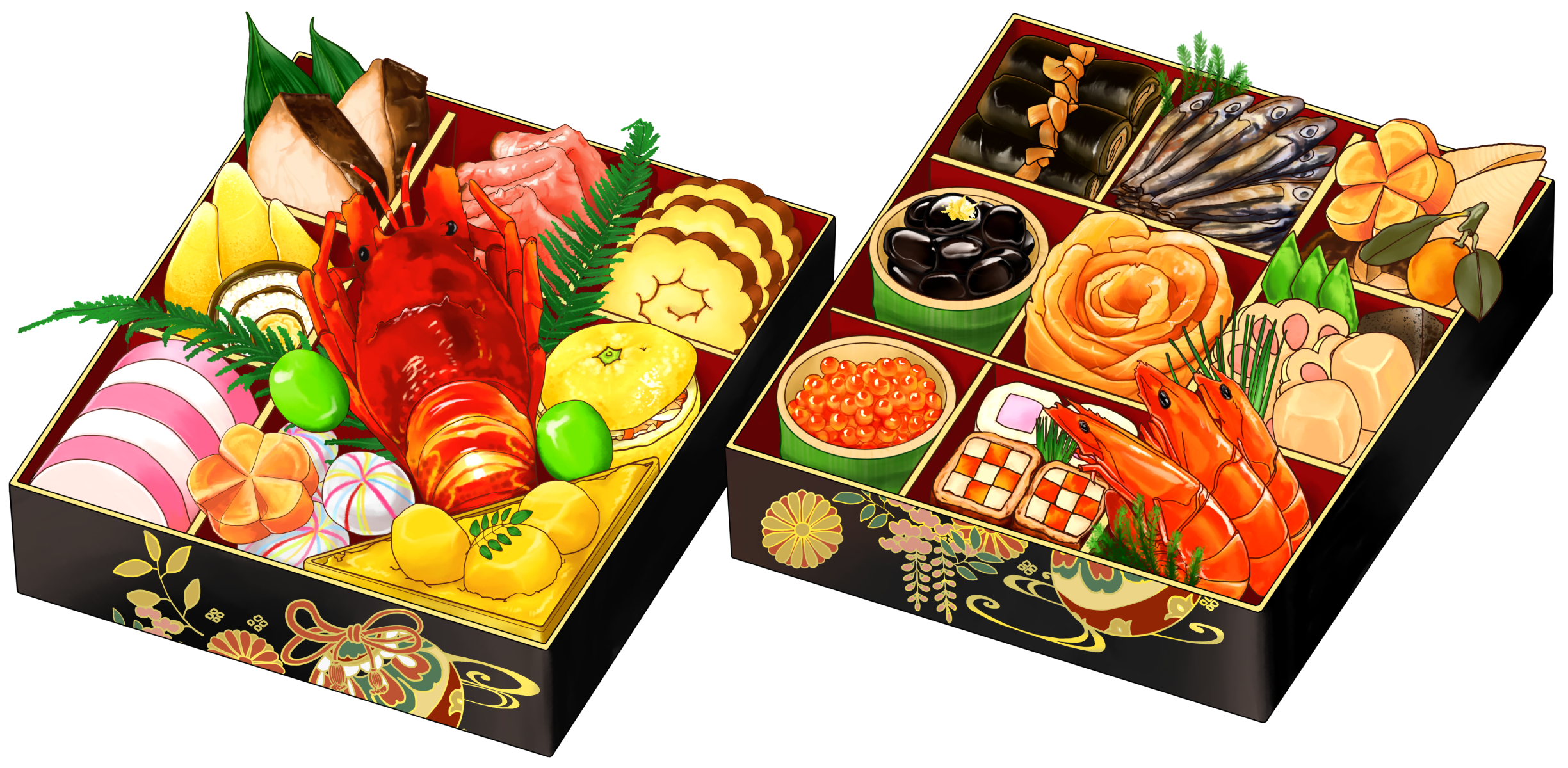 おせち料理イラスト。