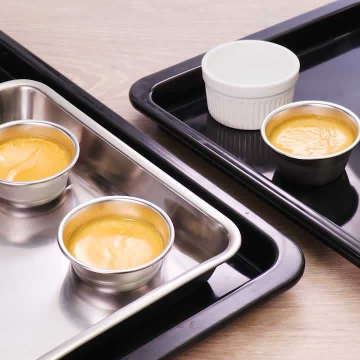 オーブンで使用するバット・トレイ - オーブンで焼きプリンを作ろうと思ったの- Yahoo!知恵袋。