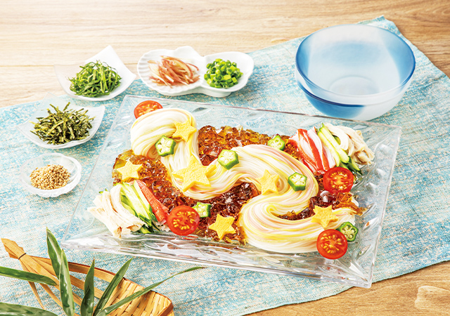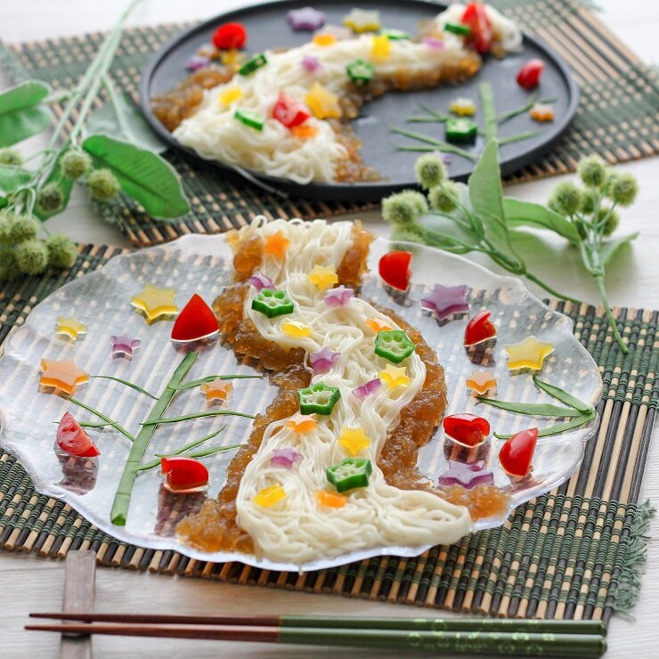七夕ゼリー寄せそうめんを楽しむ七夕レシピ。