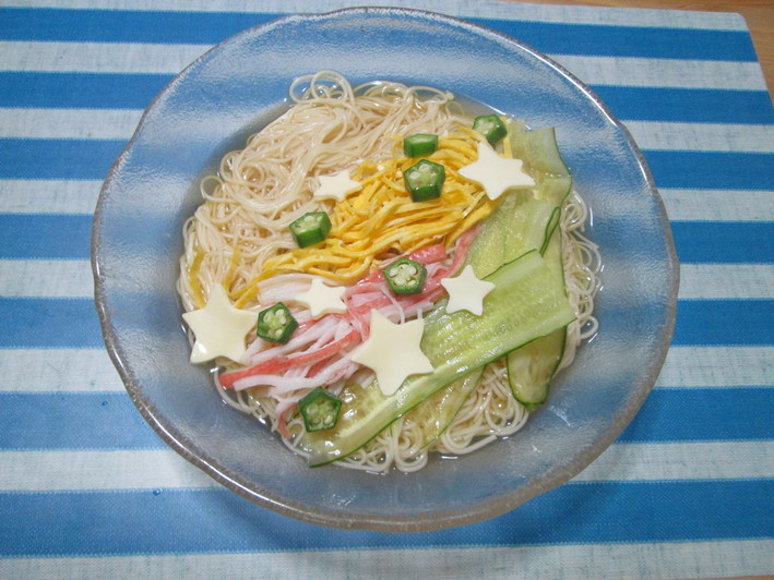 彩りもきれい♪ お星様がいっぱい!七夕そうめん。