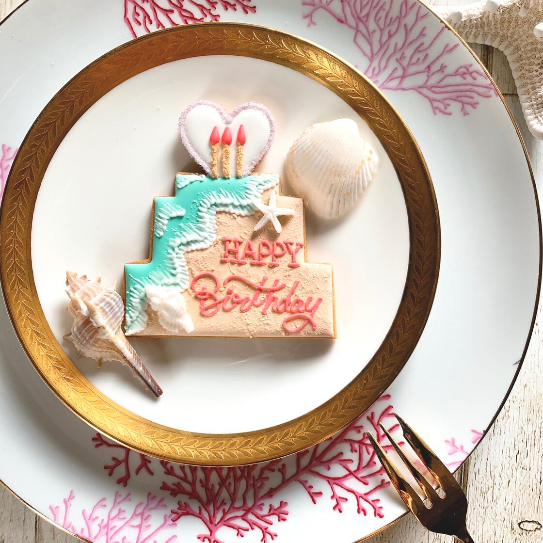 ビーチ Happy birthdayケーキアイシングクッキーPay ID。
