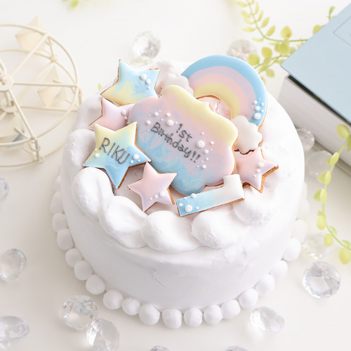 ファーストバースデーアイシングクッキーオーダー おしゃれ かわいい 虹 人気 クッキー Blue de roi ブルードロワ 通販17943729Creema クリーマ。