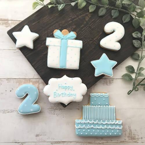 名前あり ブルー かわいいをつめたバースデーアイシングクッキーセット : puapua cookies - 通販 - Yahoo!ショッピング。