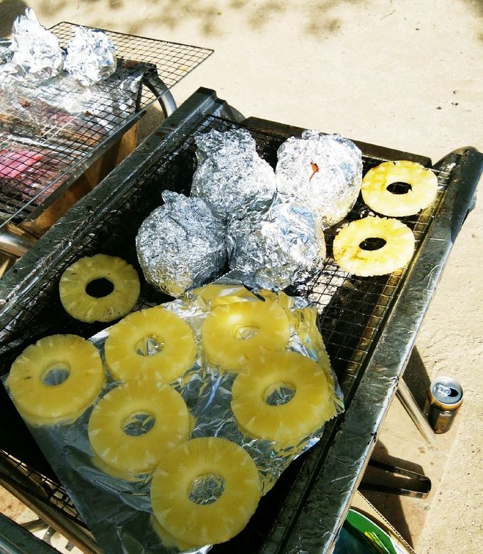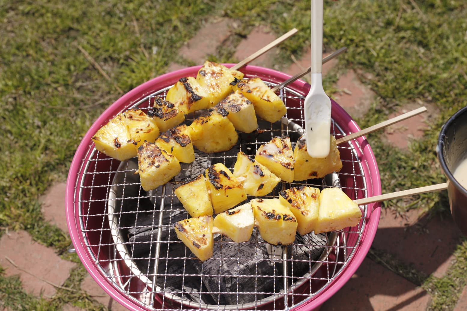 キャンプ飯 パイナップルのバーベキュー ラムミルクソースコールマンColeman。