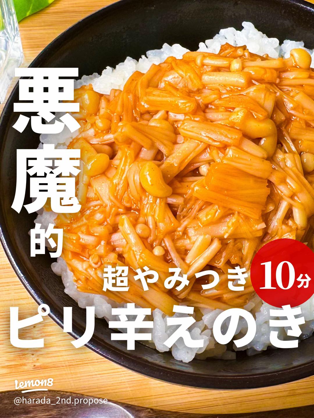 ピリ辛えのき食感ハマる♡レンジでパパっと♪。
