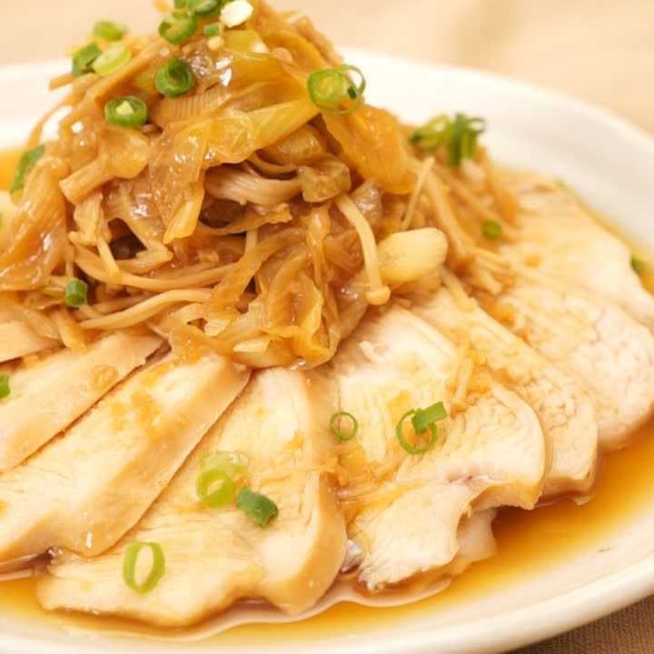 えのきに豚バラをのせレンジで蒸すだけ!ピリ辛ダレをかけて完成の簡単絶品レシピです🍄✨えのきレシピ豚バラ料理ピリ辛料理レンチン料理時短料理節約ごはん主婦応援おうちごはん簡単おかずレシピ動画。