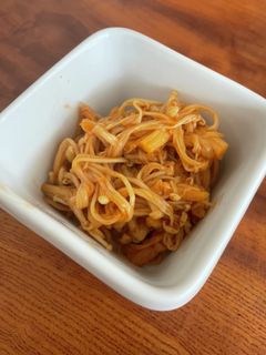 ピリ辛コチュジャン味のえのき 火を使わずレンジで即完成~。