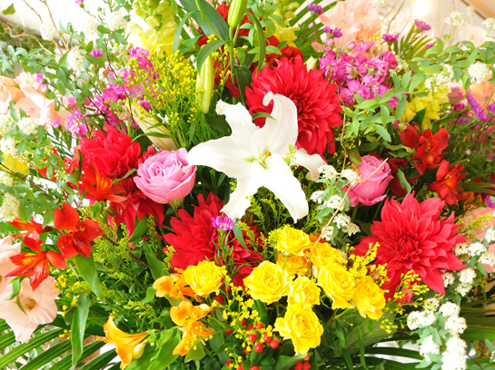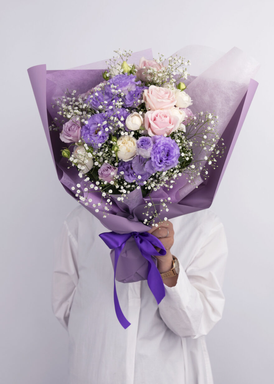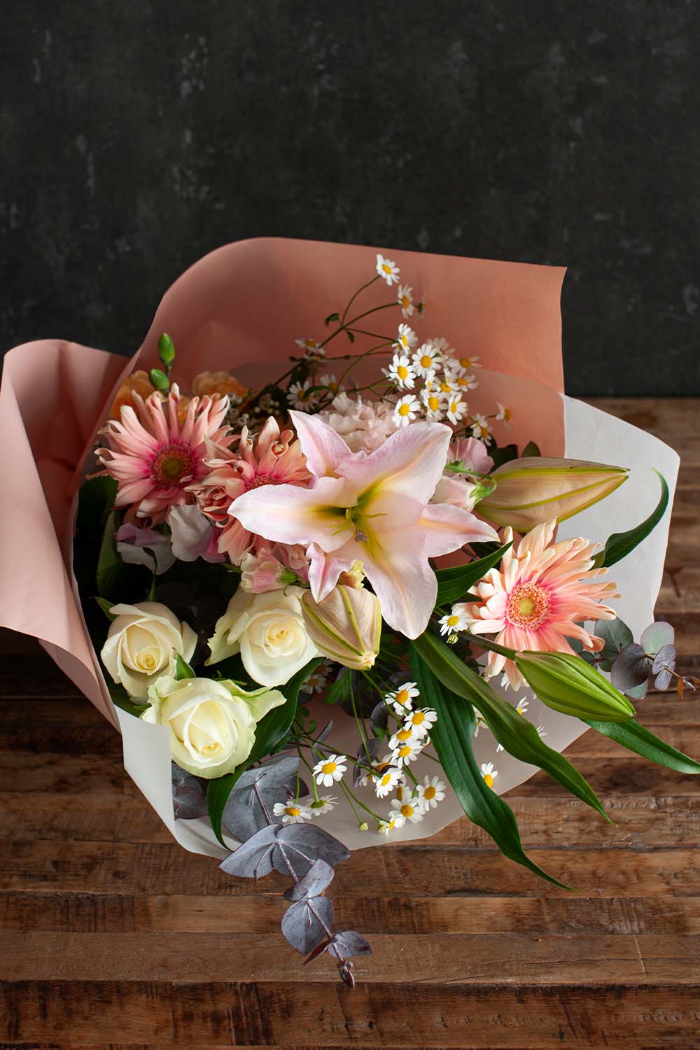 パステルカラーのボリュームのあるブーケフラワーギフト・花の通販サイト「フロレット」。