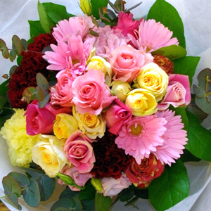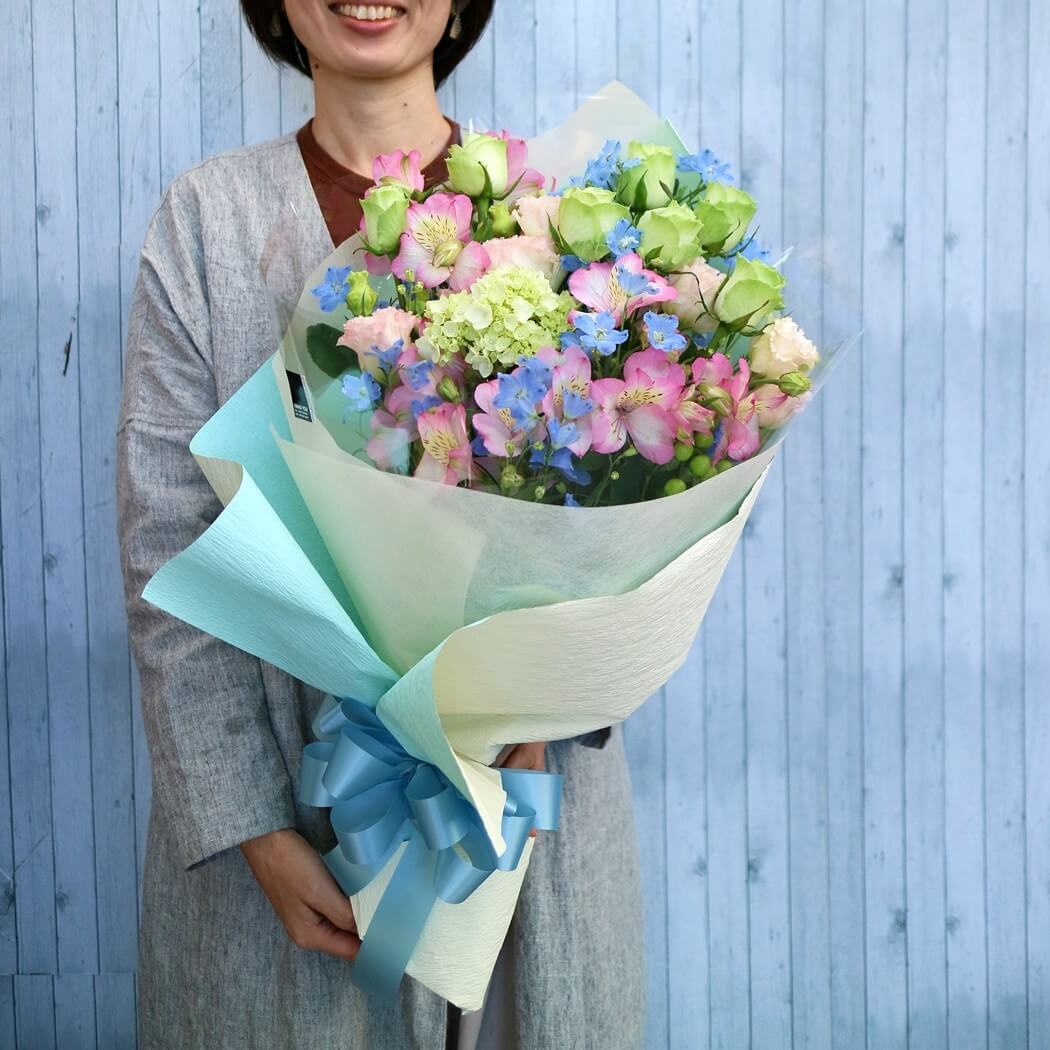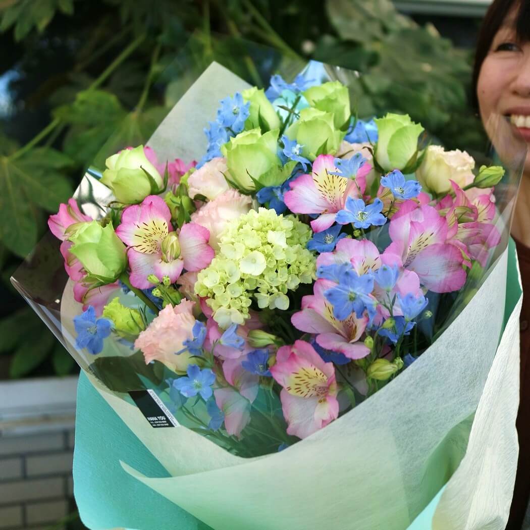パステルカラーのおまかせ花束広島花屋オンラインショップ花将。