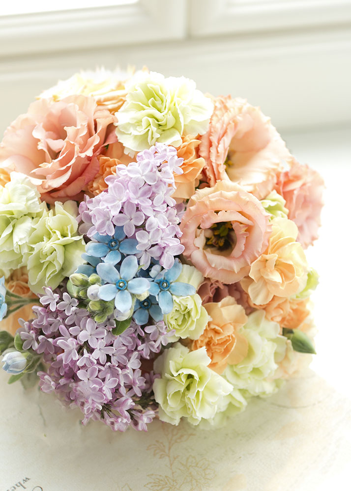 生花 パステルカラーもどこか大人色のラウンドブーケ結婚式 フラワー 生花 ブーケ ブートニア– 結婚式準備サイトCORDY コーディ。