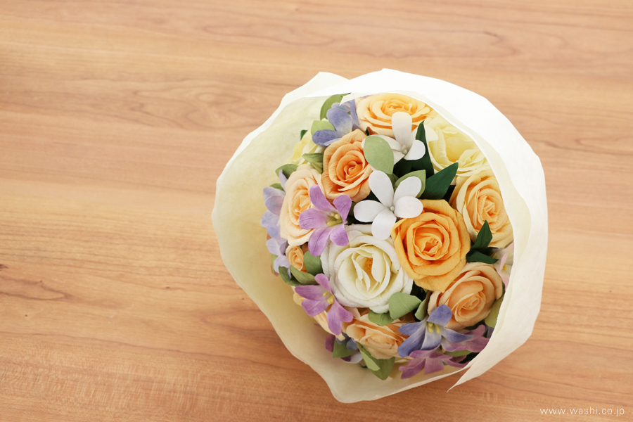 優しい色合いのバラと小花のパステルカラー和紙ブーケ 紙婚式創作和紙・インテリア企画製造の専門店 紙あさくら 浅倉紙業株式会社 石川県金沢市。