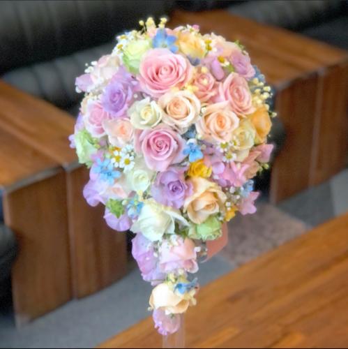 パステルカラーのローズブーケです♡ウェデングブーケ専門店INFINITY。