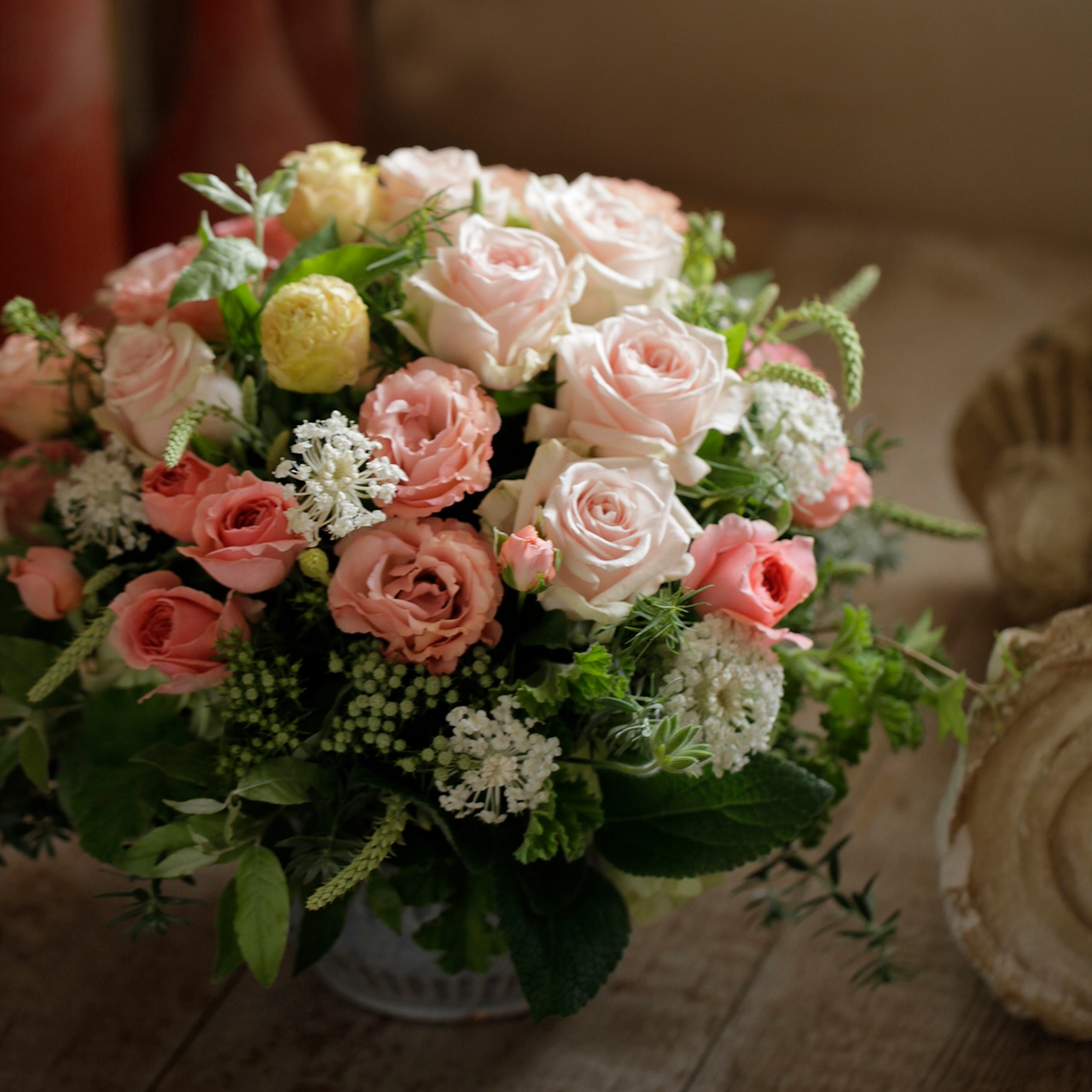 パステルピンクのアレンジメントフラワーショップ Bremen Flower Japan。