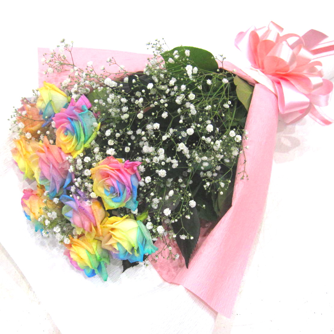 レインボーローズ ピュアパステル 季節の花 アレンジメント Rフラワーギフト 生花 虹 バ。