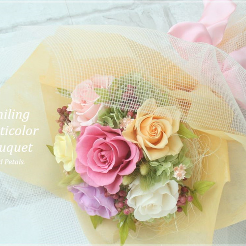 そのまま飾れるパステルカラーのカラフルな花束 発表会や披露宴の花束贈呈、卒業式・送別会にも 母の日ギフト B036 プリザーブドフラワー andPetals. 通販 14364257Creema クリーマ。