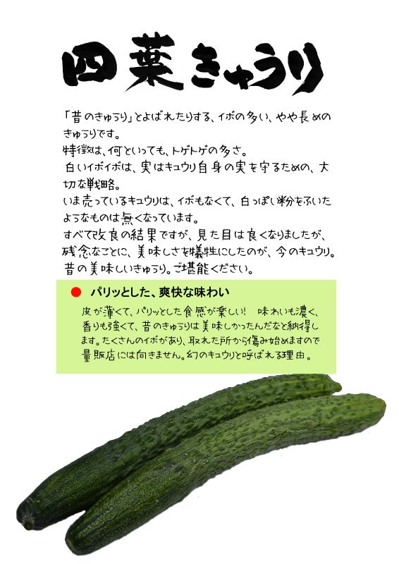 シャキッ!とした食感が美味しい、昔懐かしい「四葉きゅうり」。