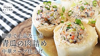 旬の青瓜の美味しい食べ方と作り方。青瓜の肉詰め・無添加中華スープ仕上げキュウリより肉厚な青瓜。絶品で簡単な美味しいレシピ。