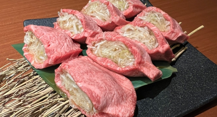 新メニュー:厚切り生タン塩ネギ包み焼き ”生”の牛タンでネギを包み込んだインスタ映え確実の逸品焼肉ホルモン 山水縁 虎ノ門本店グルメプレス。