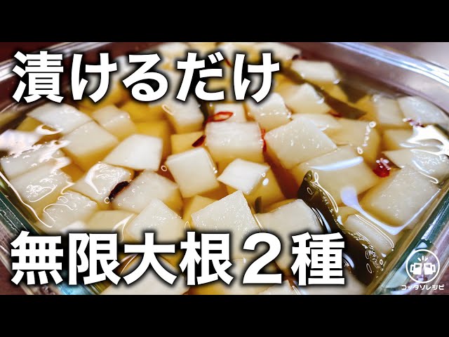 漬けるだけ 簡単で激ウマな無限大根レシピ2種『ポリポリ無限大根 & シャキシャキ漬け』高血圧、内臓脂肪にも効く♪ 大根一本使い切り 甘酢漬け 常備菜 ダイエット 節約 千枚漬け- YouTube。