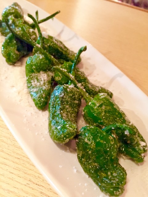 パリ15区パドロンスペインバルビールのつまみししとうししとうの素揚げ素揚げ素揚げ野菜。