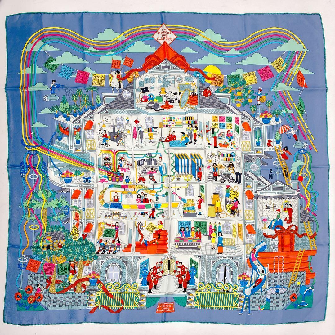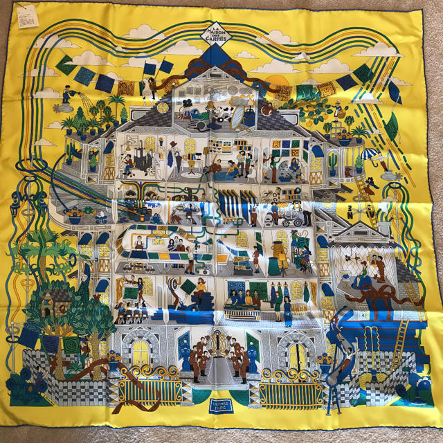美品 エルメス メゾン デ カレ ツイリー ブルー、イエロー スカーフ 楽天市場 HERMES エルメス La Maison。