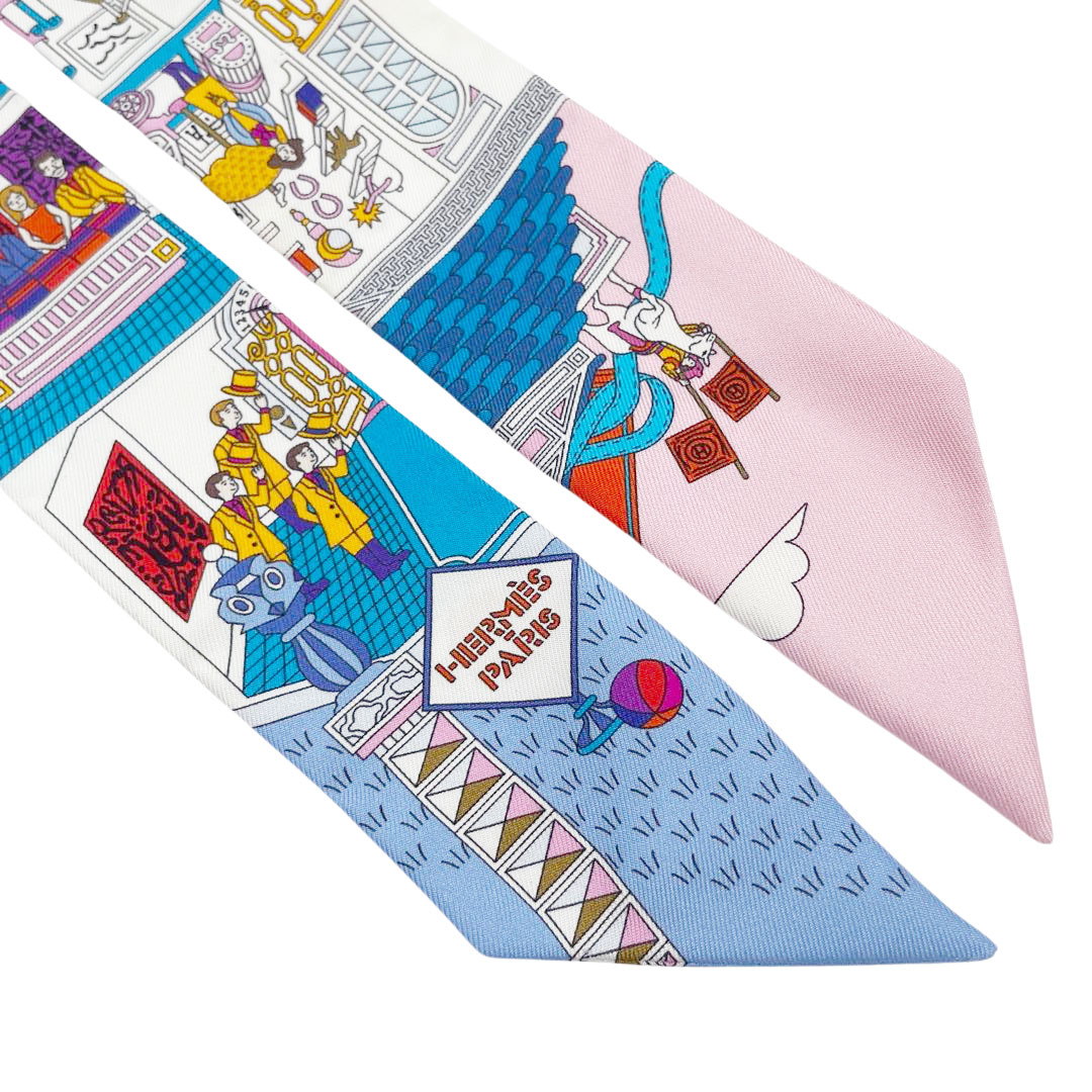 HERMES エルメス ツイリー スカーフ "メゾン・デ・カレ" アクアXヴェールXローズ シルク100% 新品。