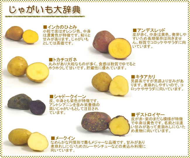 ばれいしょ、じゃがいも、ジャガイモ博物館、ジャガイモ品種一覧。