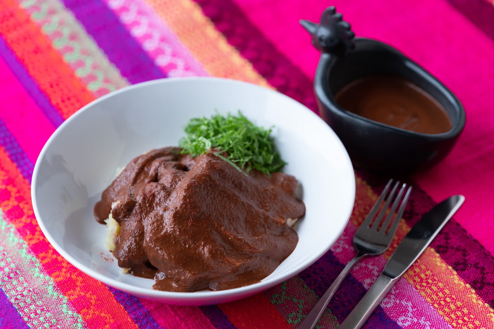 メキシコ風鶏のチョコレート煮込み「モレ・デ・ポジョ」。