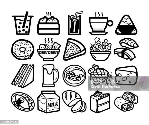 お弁当食品学校給食アイコン設定ベクトルPremiumベクトル素材。