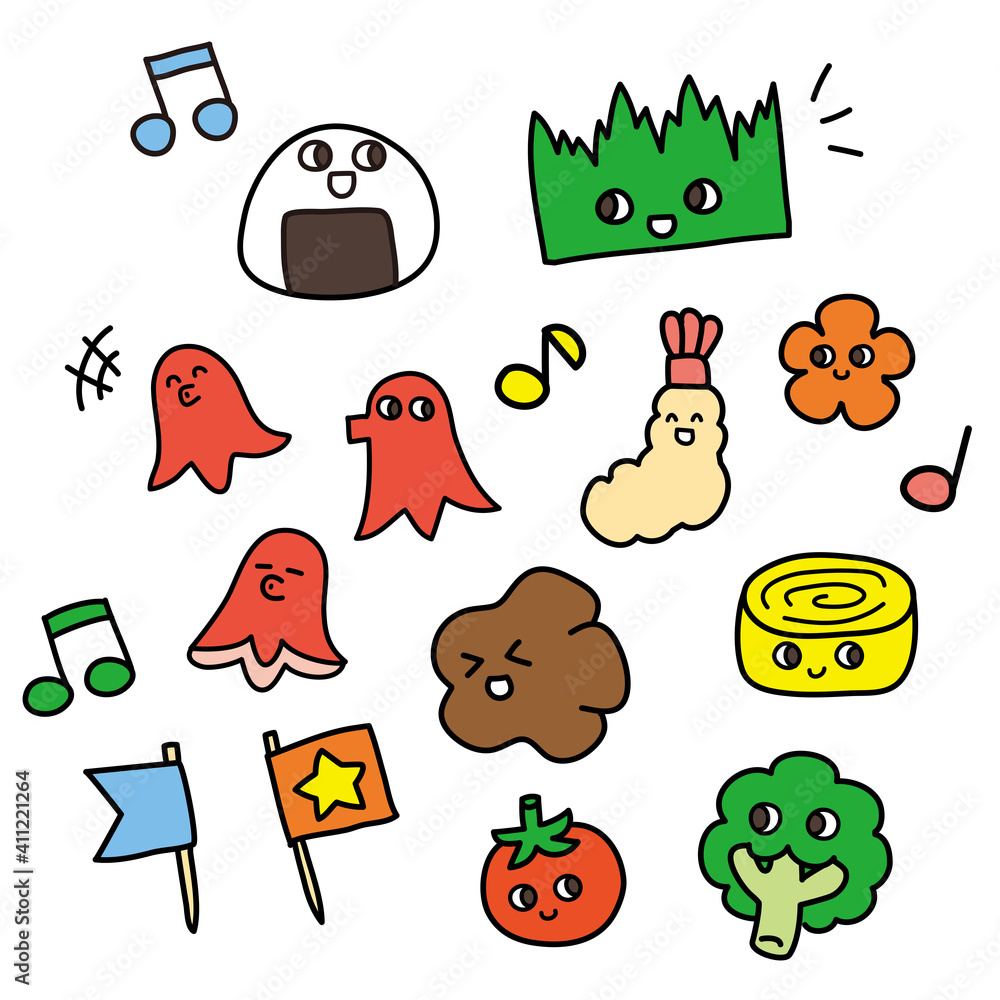 お弁当キャラクターアイコンセット Stock VectorAdobe Stock。