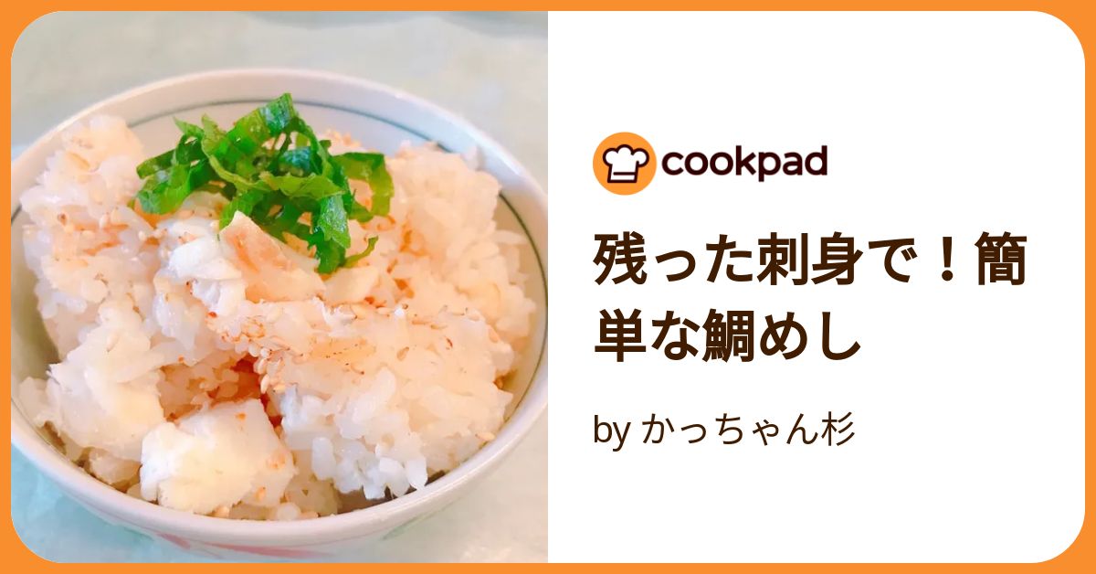 残った刺身で!簡単な鯛めし by かっちゃん杉クックパッド簡単おいしいみんなのレシピが392万品。