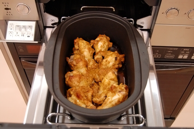 プロが教える楽々お料理レシピリンナイのスマイルクッキング鶏モモ肉のコンフィ。