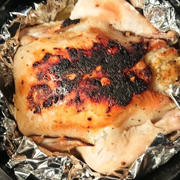 夫婦でキャンプ:ローストチキン。