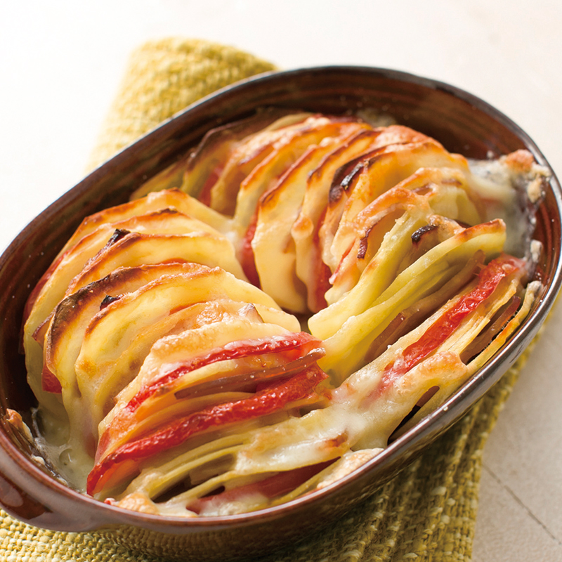 プリマハムレシピハムとじゃがいものアツアツ重ね焼き。