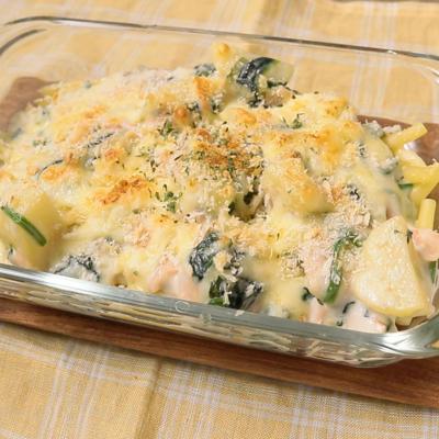 ロースハムと蓮根のおろしじゃがいも重ね焼き。