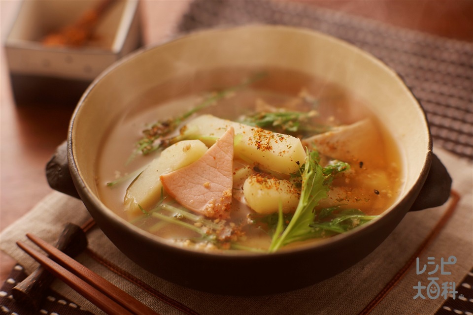じゃがいもとハムのごま辛スープ。