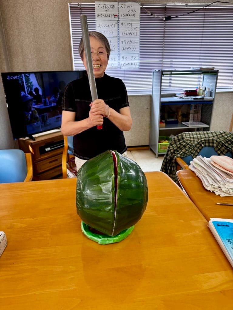 かなやまの里では、手作りの「スイカ割り」を楽しみました・!!かなやまの里デイサービス。