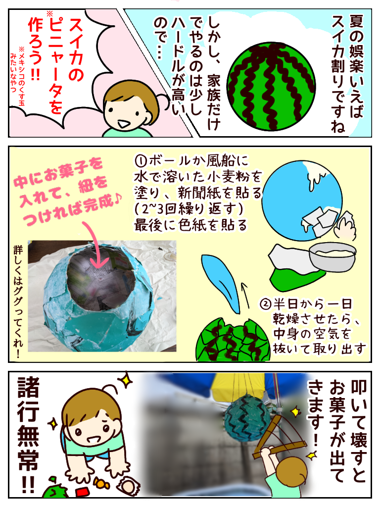 スイカ割りピニャータの作り方幕張親子英語教室 チカビディ。