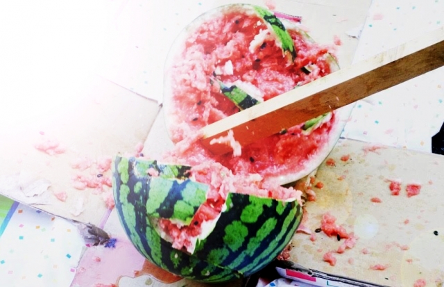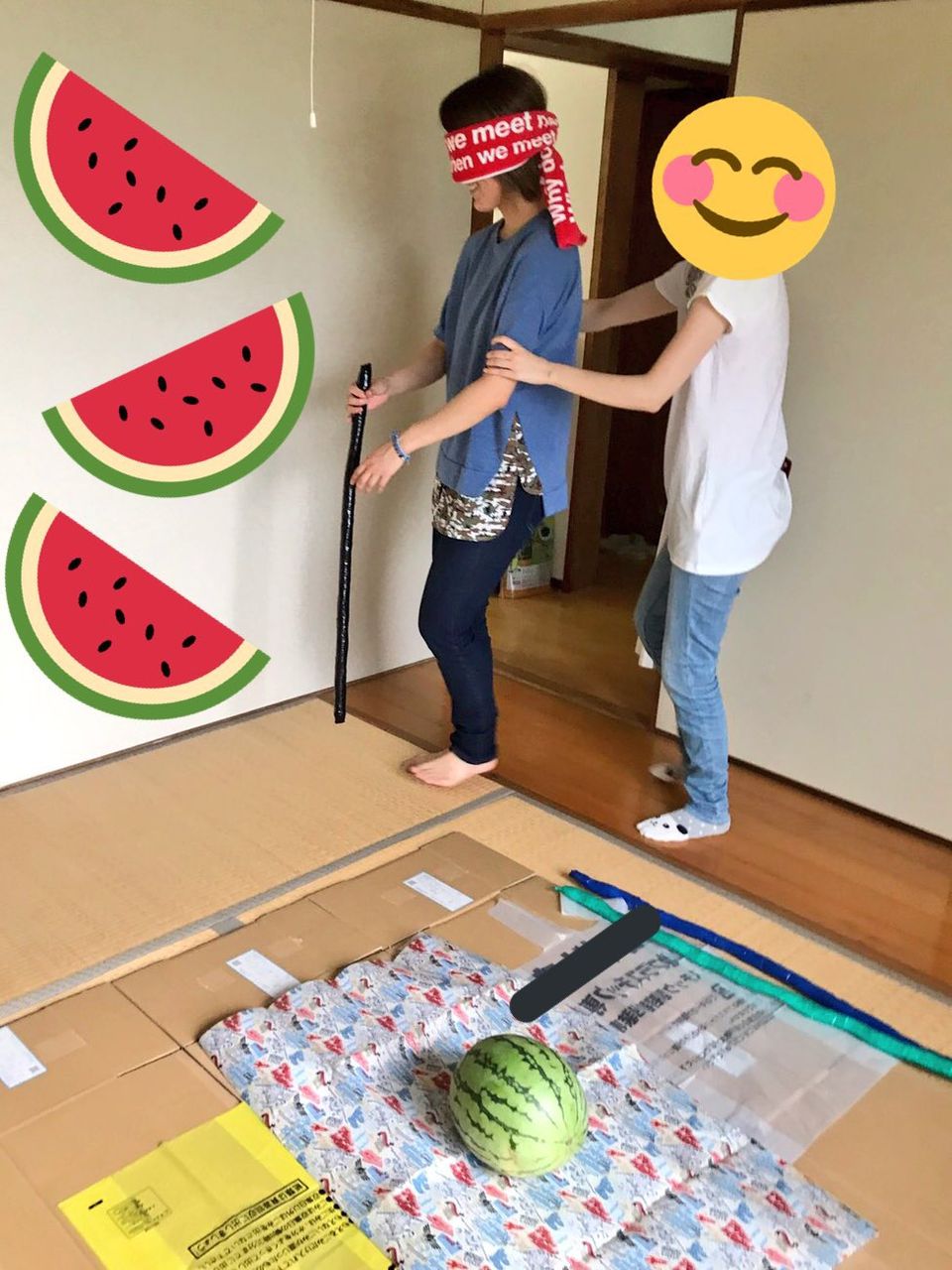スイカ割り 家の中でも割れますよ?新聞紙で作った手作り棒が想像以上の活躍! : ポーカーfaceが笑うまで。