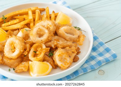 カラマリ フライ、レモンと揚げイカの写真素材・画像素材 Image 15580075。
