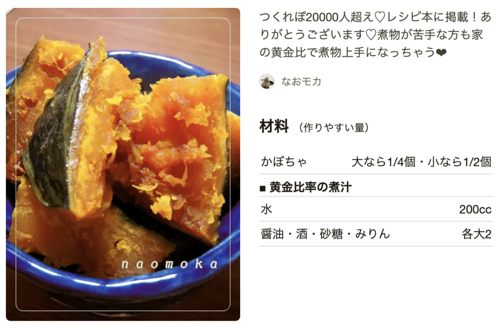 かぼちゃの煮物 レシピ つくれぽ最新人気レシピランキング!殿堂入りレシピを中心にご紹介レシピランキングネット。