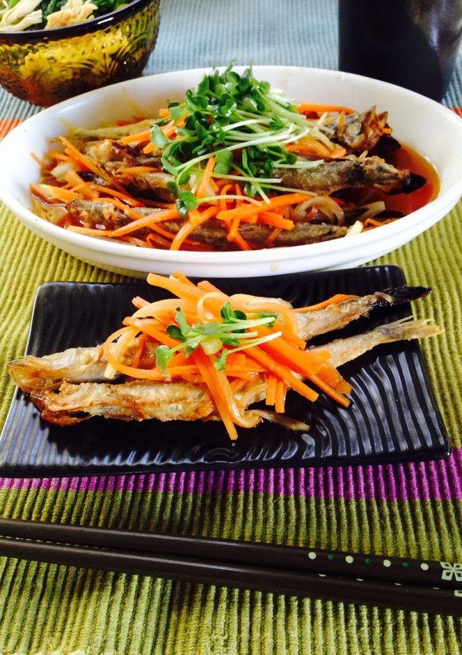 揚げない トースターでししゃもの南蛮漬け。